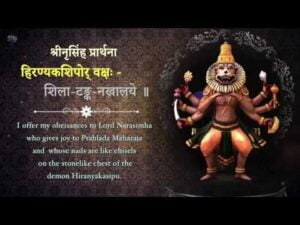 नमस्ते नरसिंहायप्रह्लादाह्लाद-दायिनेहिरण्यकशिपोर्वक्षः-शिला-टङ्क-नखालये इतो नृसिंहः परतो नृसिंहोयतो यतो यामि ततो नृसिंहः बहिर्नृसिंहो हृदये नृसिंहोनृसिंहमादिं शरणं प्रपद्ये तव करकमलवरे नखमद्भुत-शृङ्गंदलितहिरण्यकशिपुतनुभृङ्गम्केशव धृतनरहरिरूप जय जगदीश हरे ।